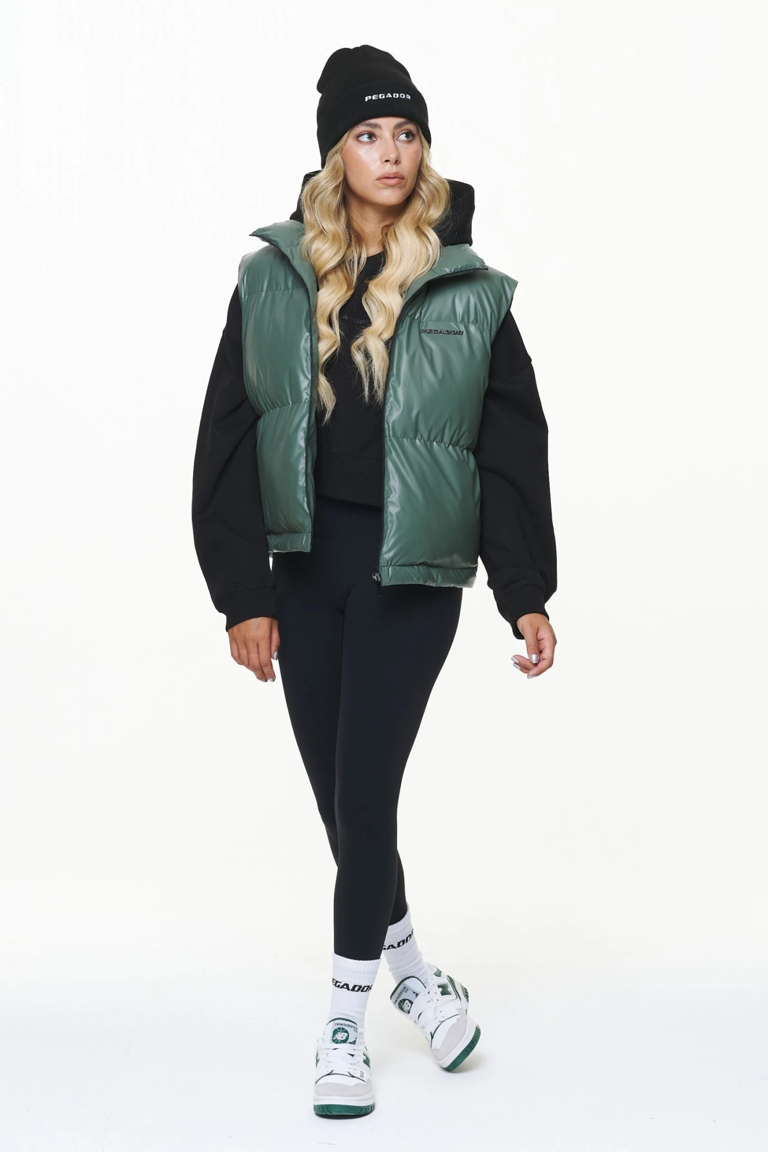 - garden green puffer vest in regular fit