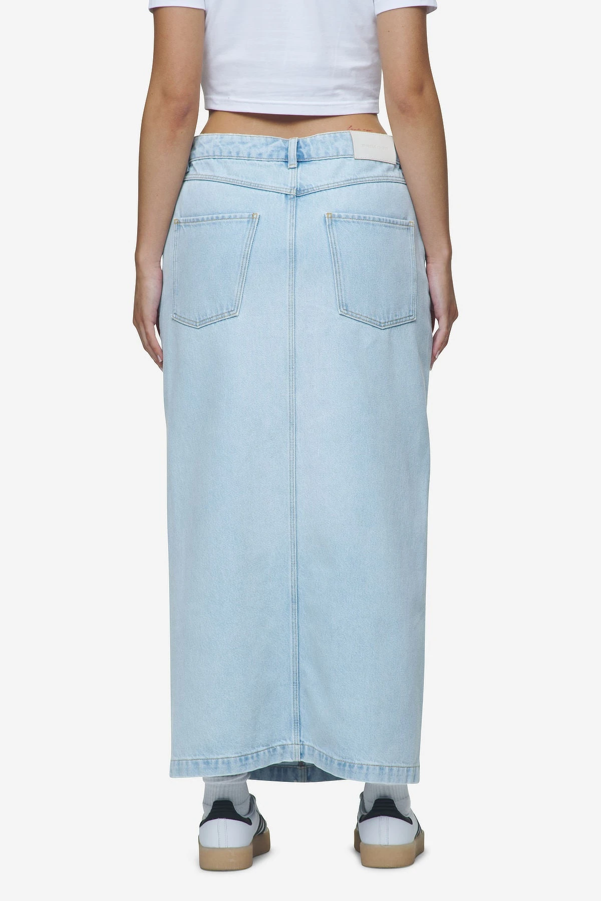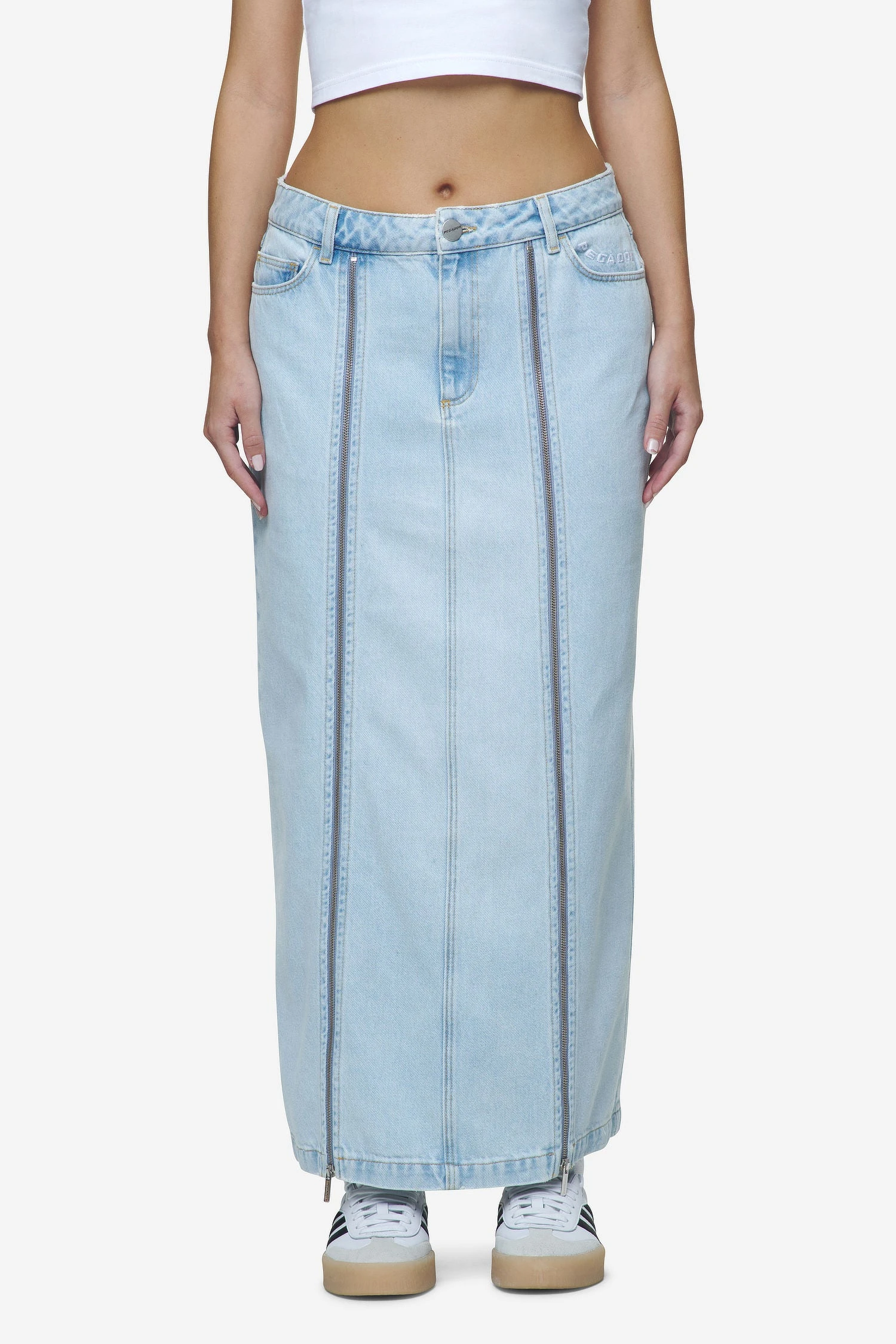 Aya Denim Midi Zip Skirt Washed Light Blue
