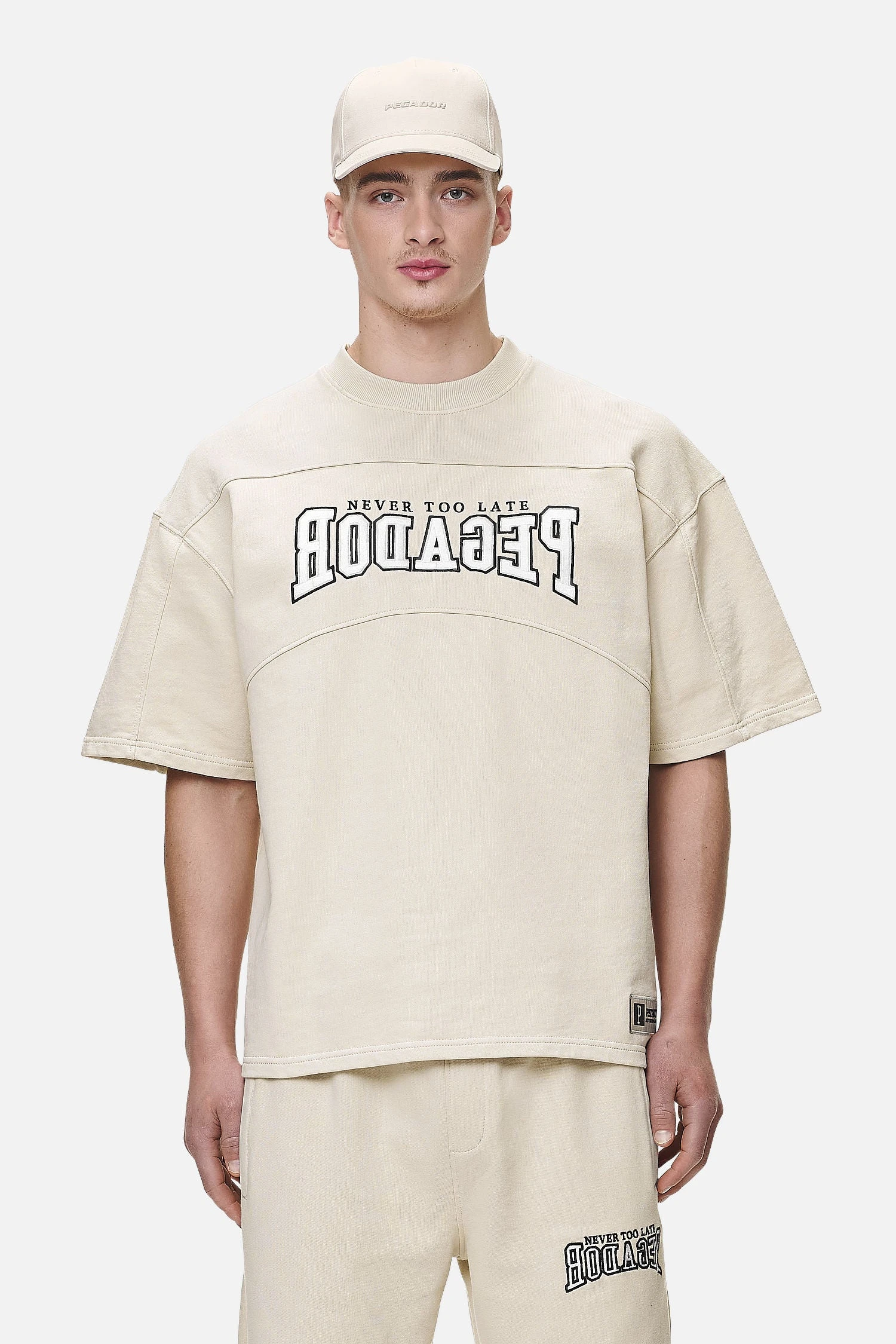 - safari sand / black logo embroidery to the front
