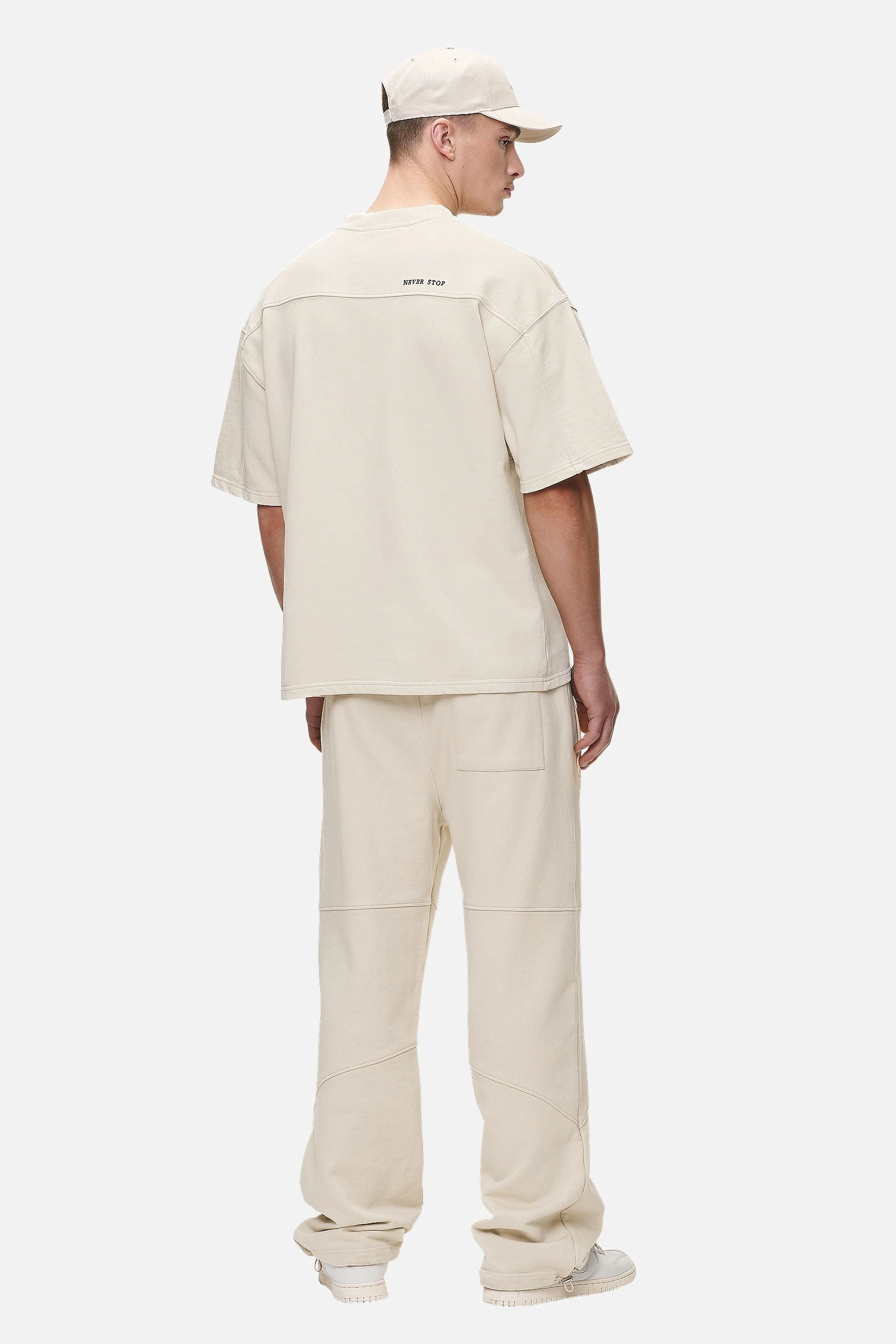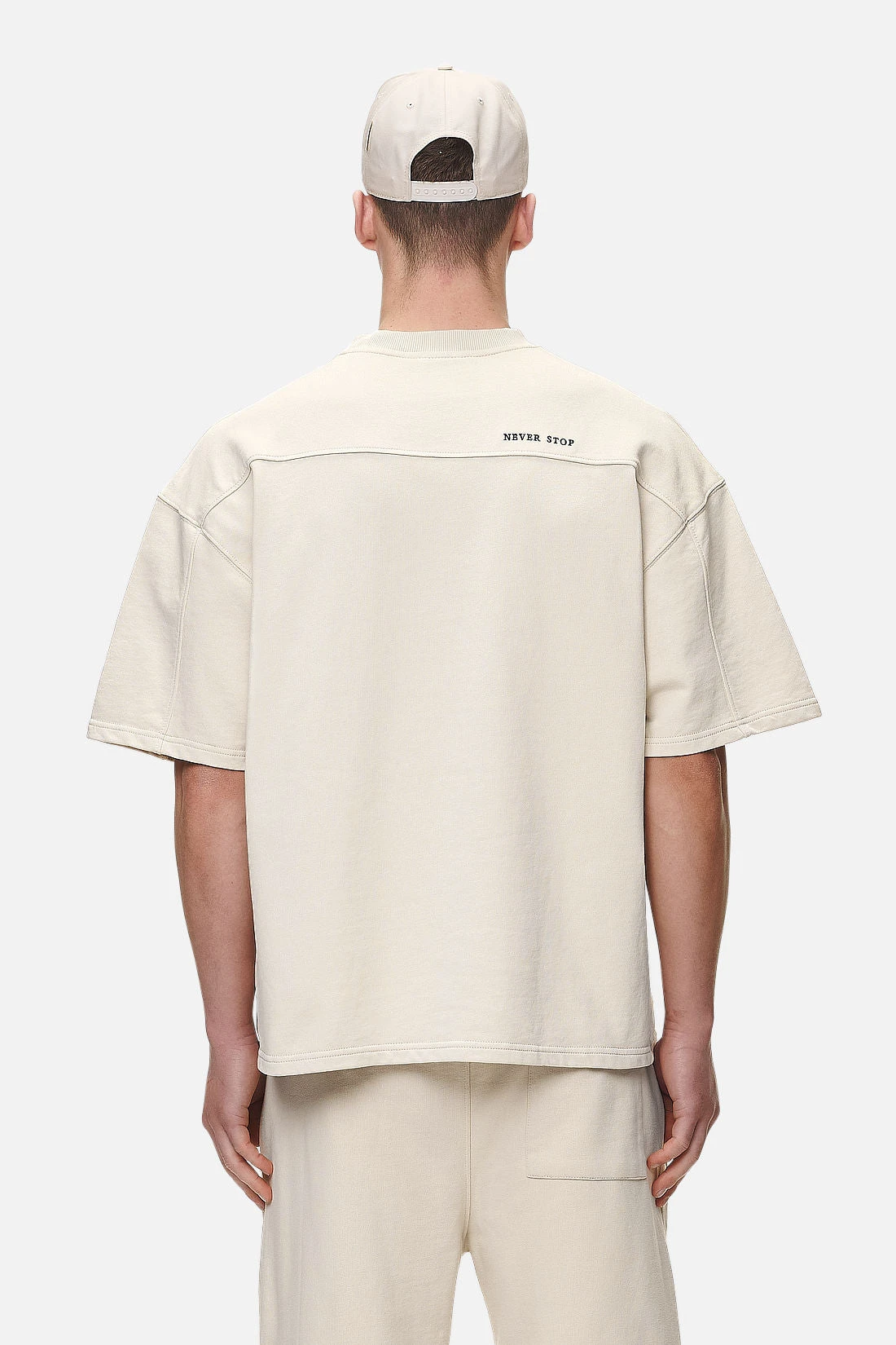 - black ‘never stop’ embroidery to the back