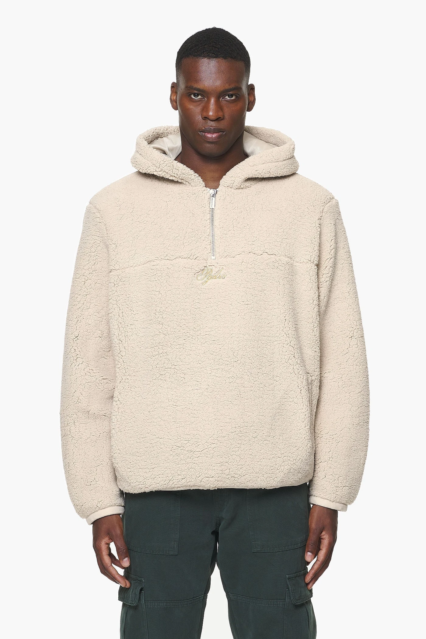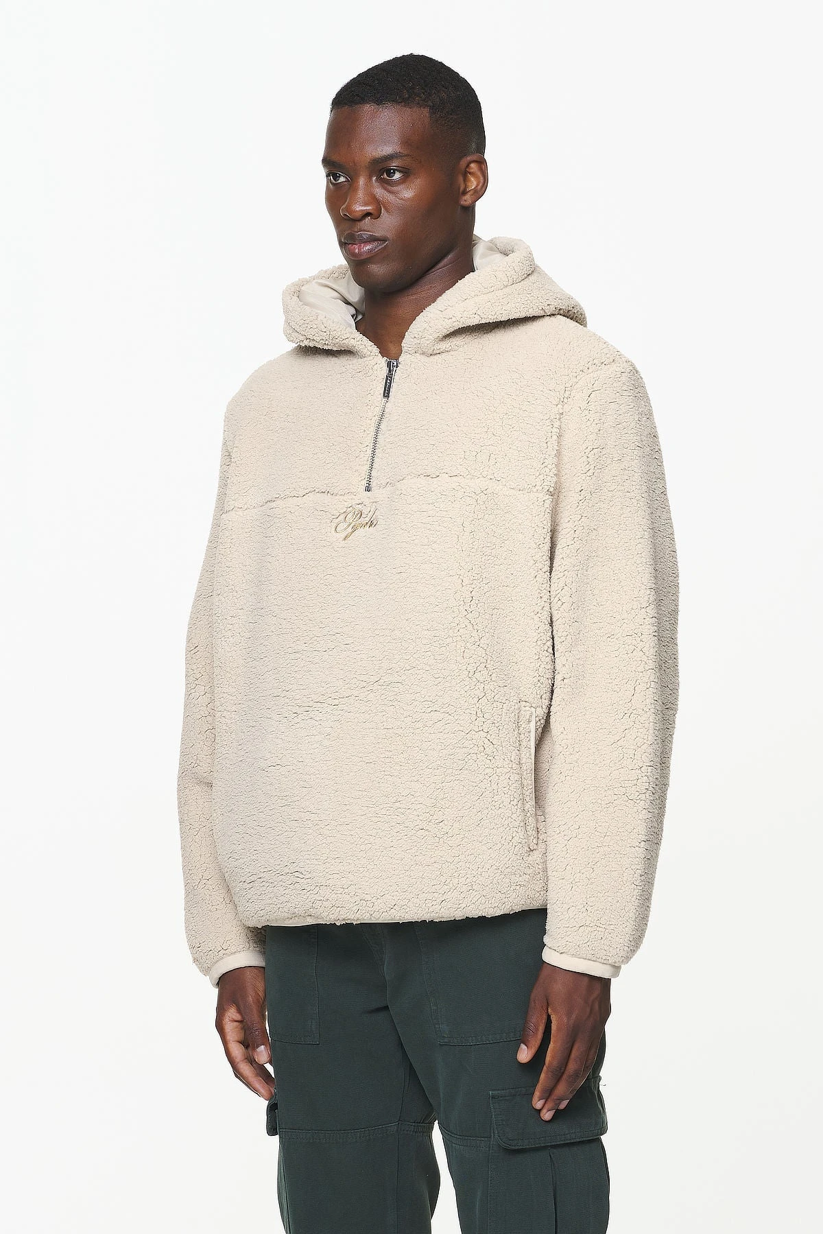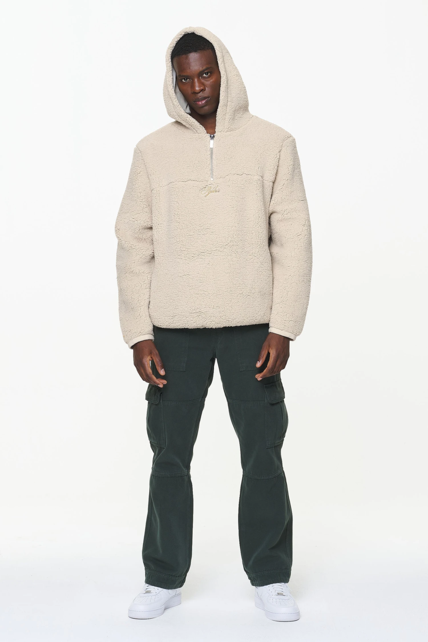 - kingdom beige teddy half zip hoodie