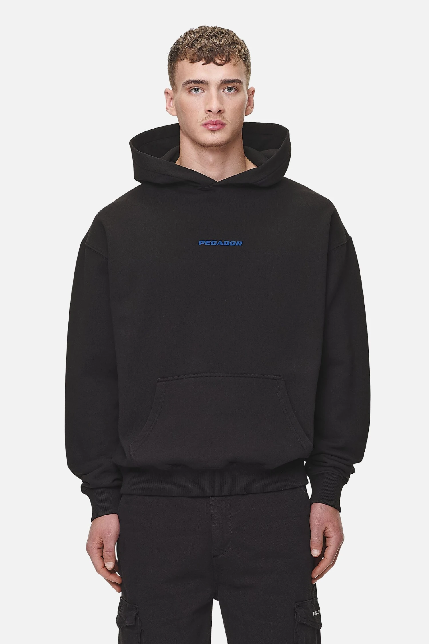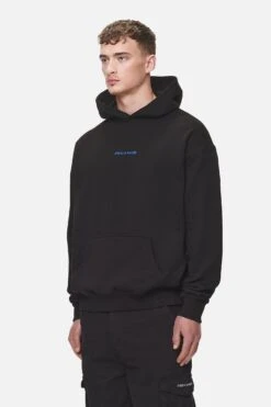 Colne Logo Oversized Hoodie Washed Black Retro Blue