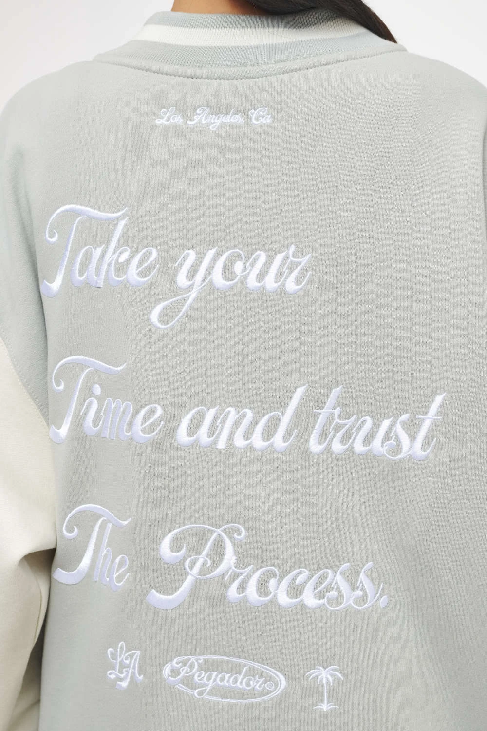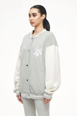 - vintage washed quiet gray varsity jacket