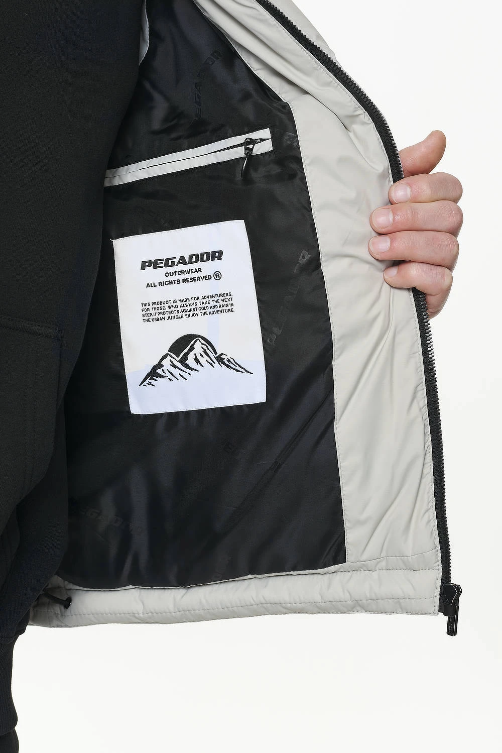 - logo branding and zip pocket on the inside