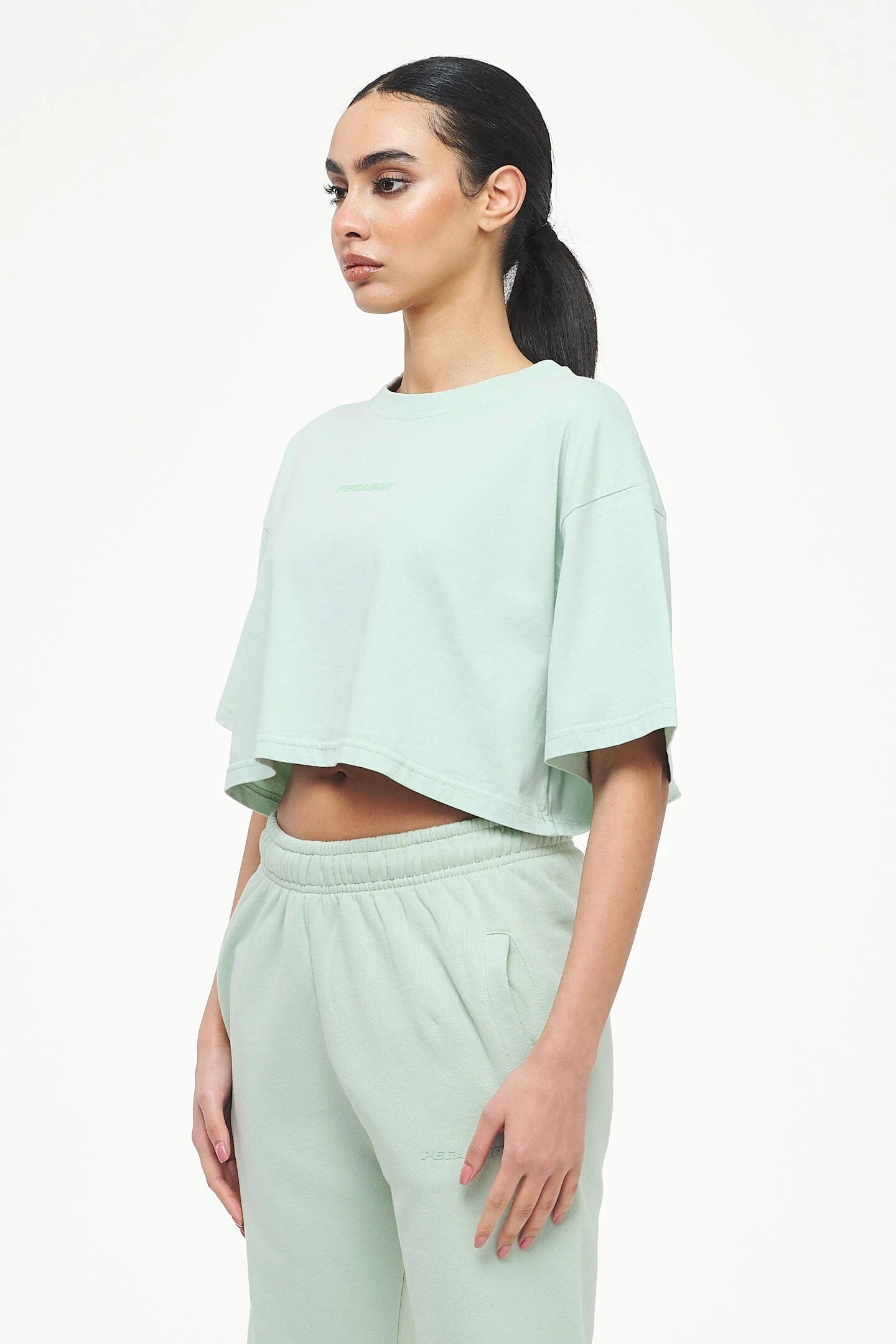 Layla Oversized Cropped Tee Vintage Washed Milky Green Gum