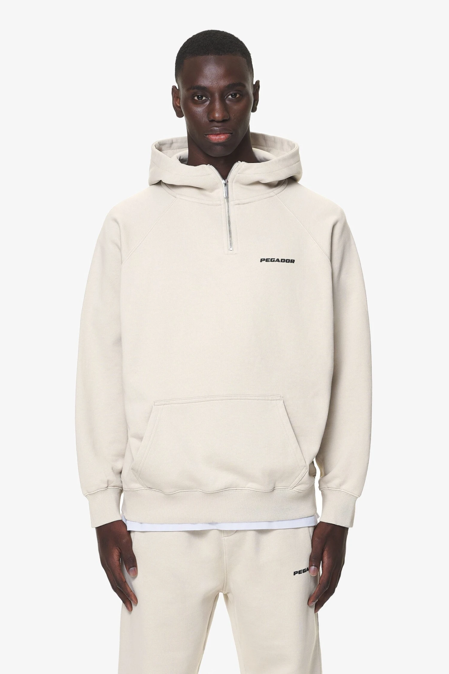 - washed dust cream halfzip hoodie