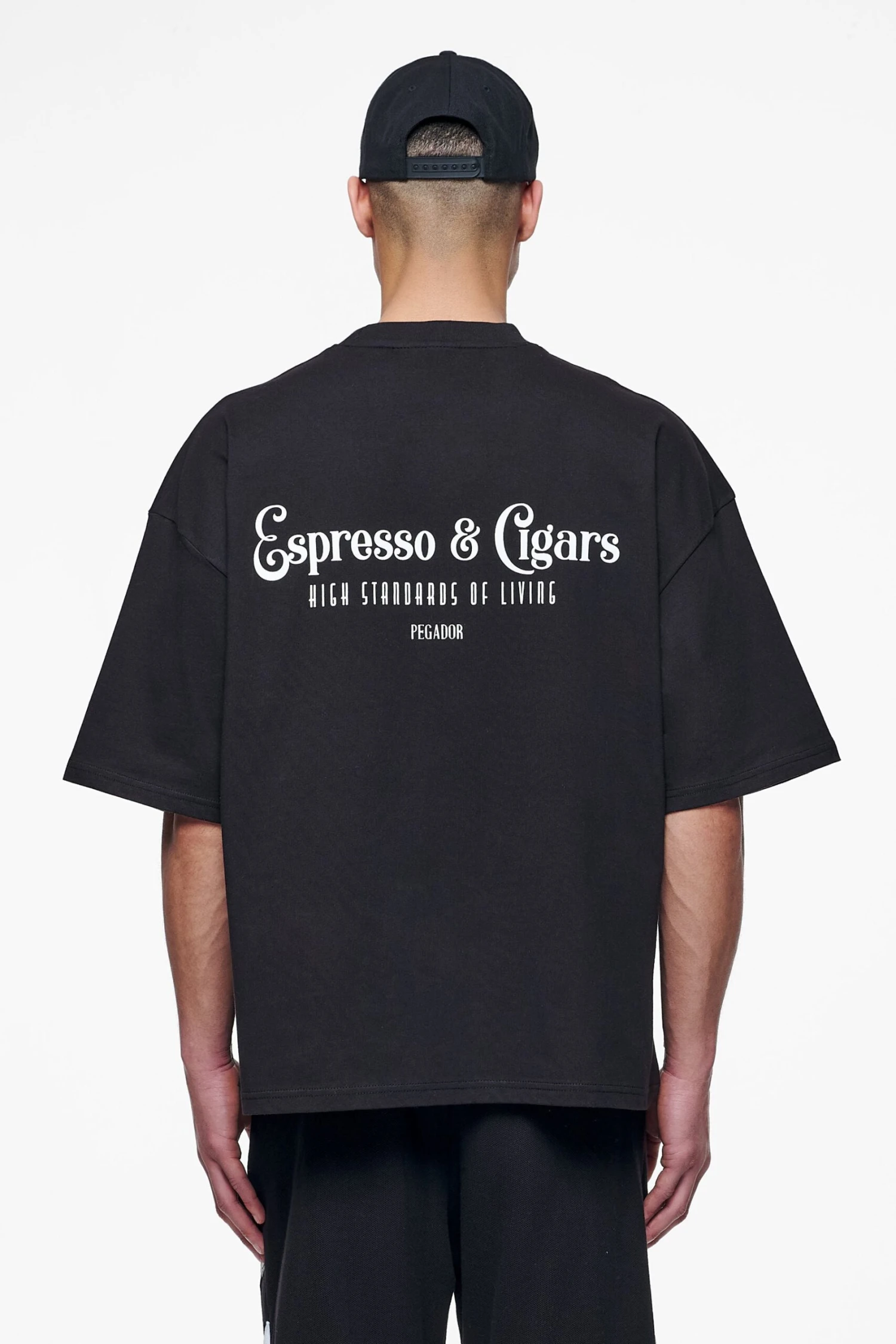 - white ‘espresso & cigars’ print to the front and back