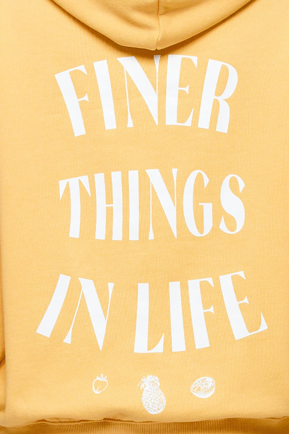 - white ‘finer things in life’ print to the back