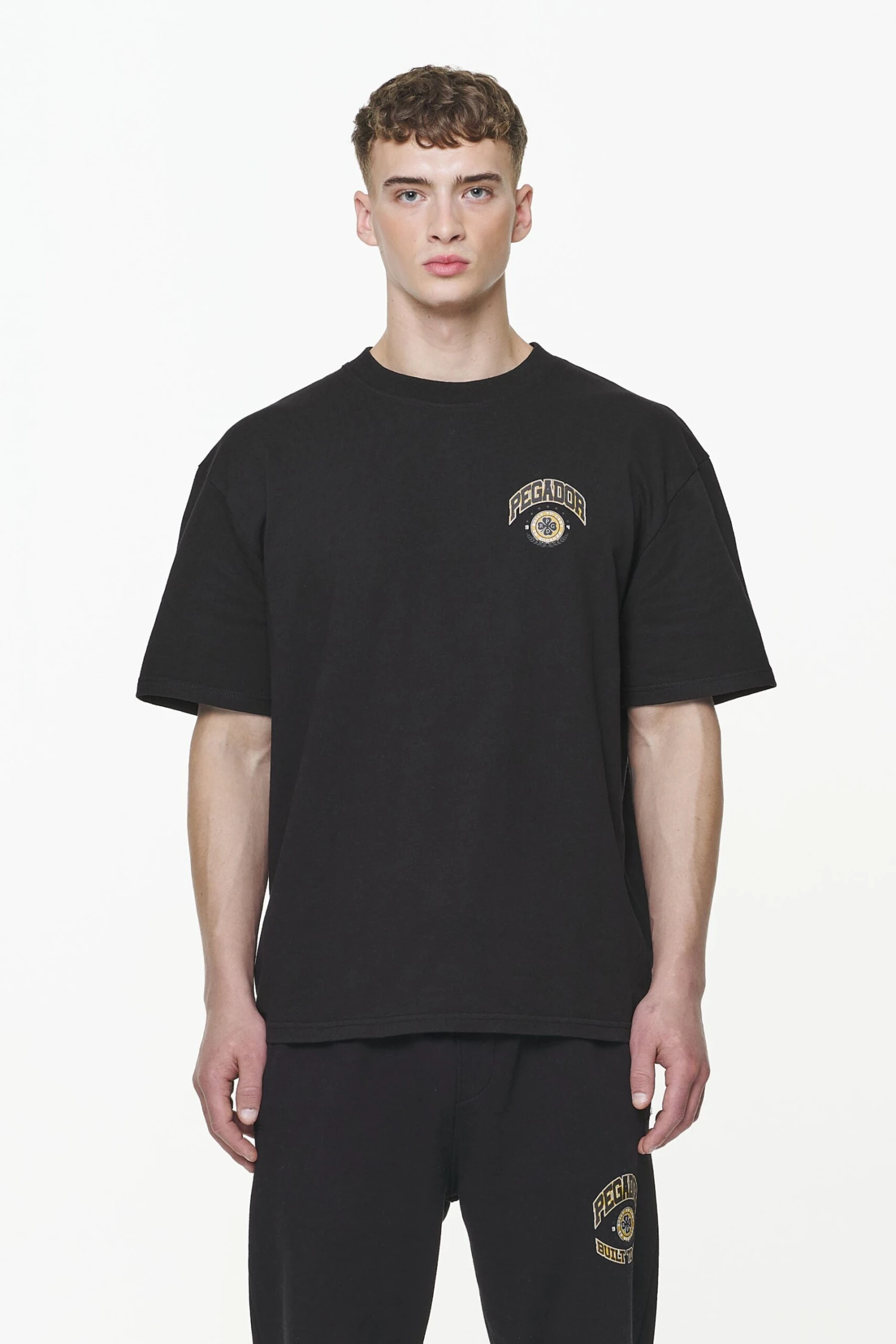 - mustard / black logo print to the front