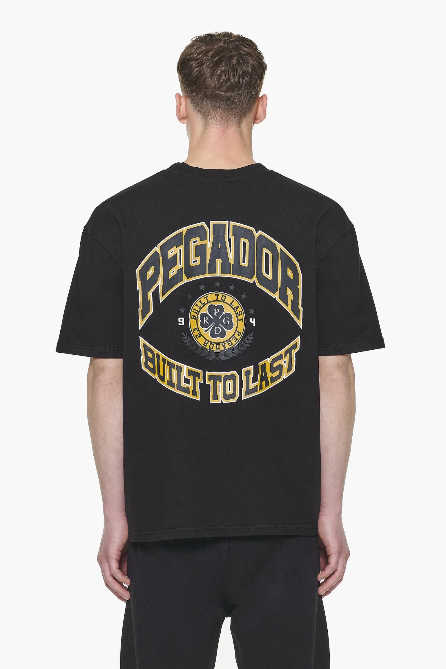 - mustard /black ‘built to last’ print to the back