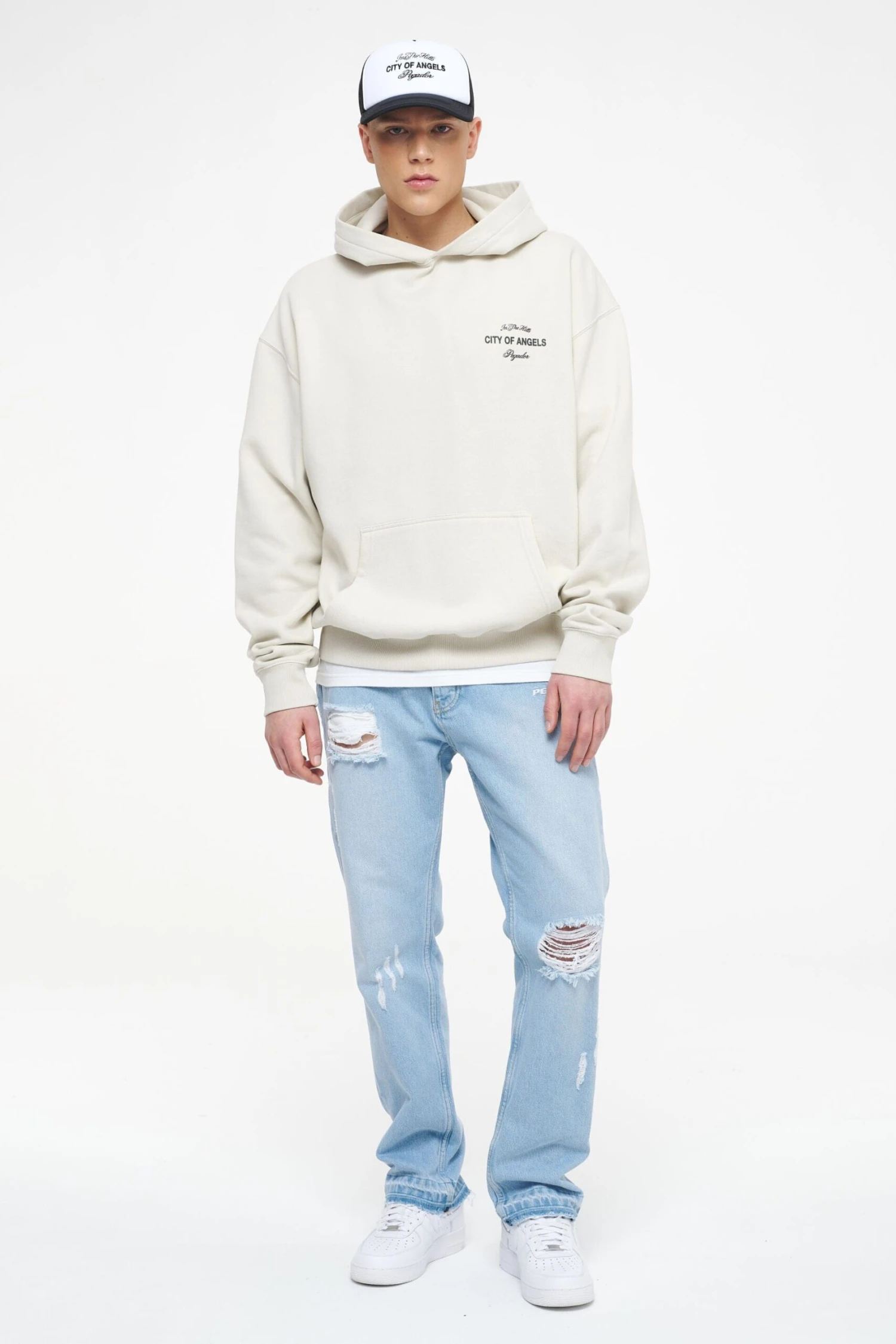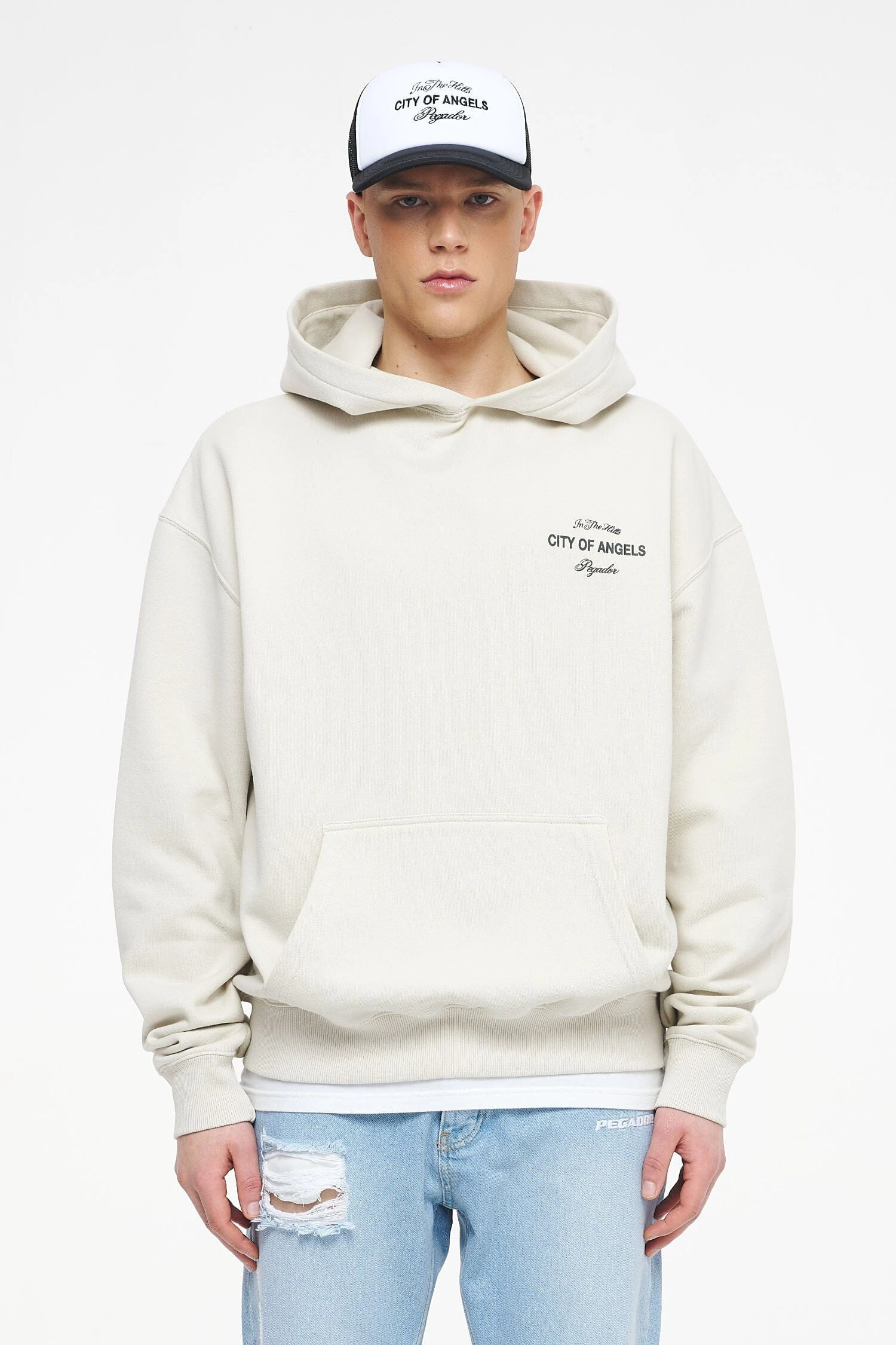 - vintage washed angels cream hoodie